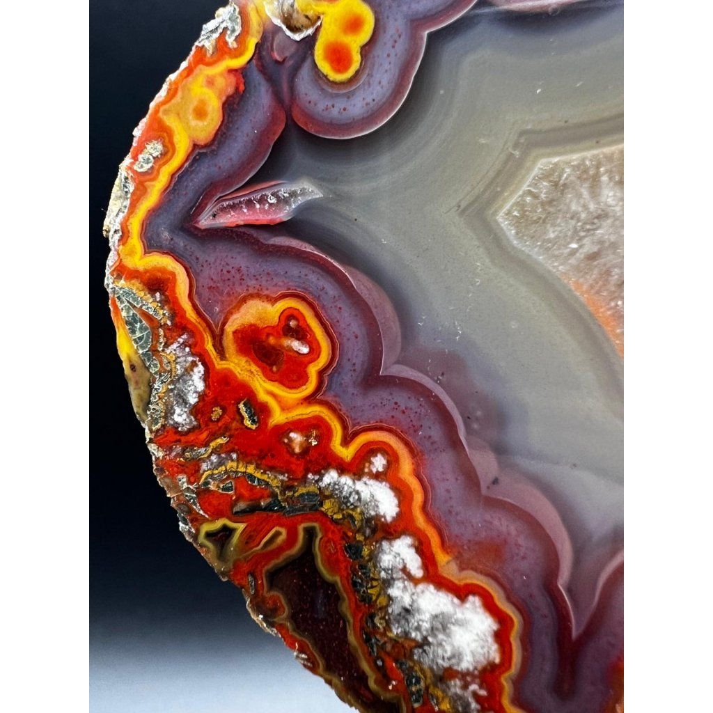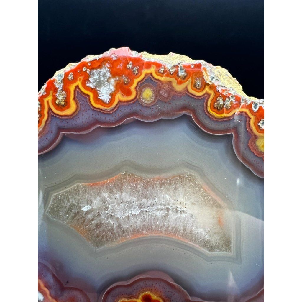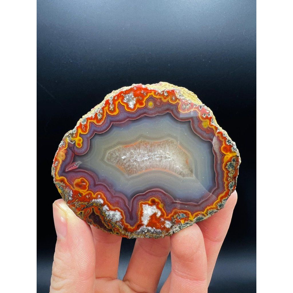 Kvalitní dokonale ukončený achát z marocké lokality Kerrouchen. Fotografie nejsou nijak barevně upravovány – kupujete přesně ten kus, který vidíte.