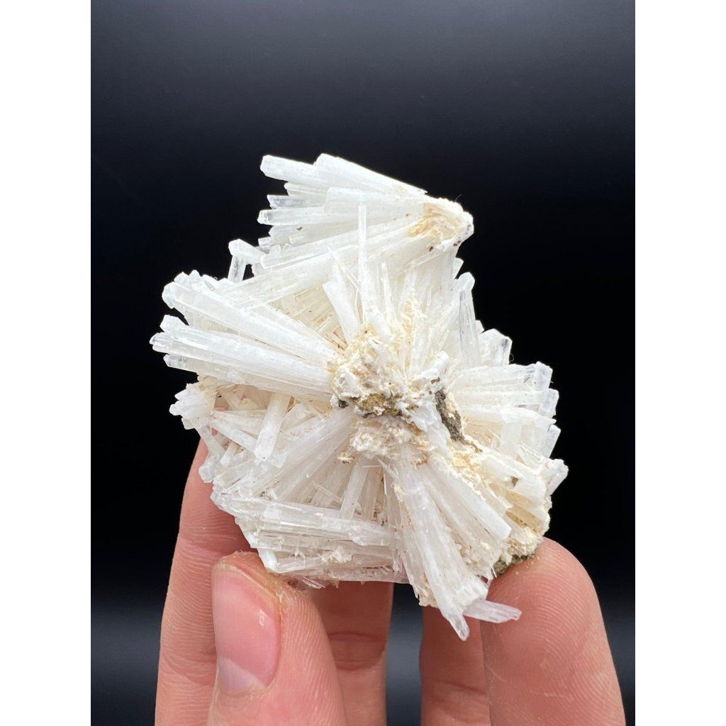 Sběratelský vzorek přírodního natrolitu. Kámen pochází z marocké horské oblasti Imilchil (provincie Midelt).